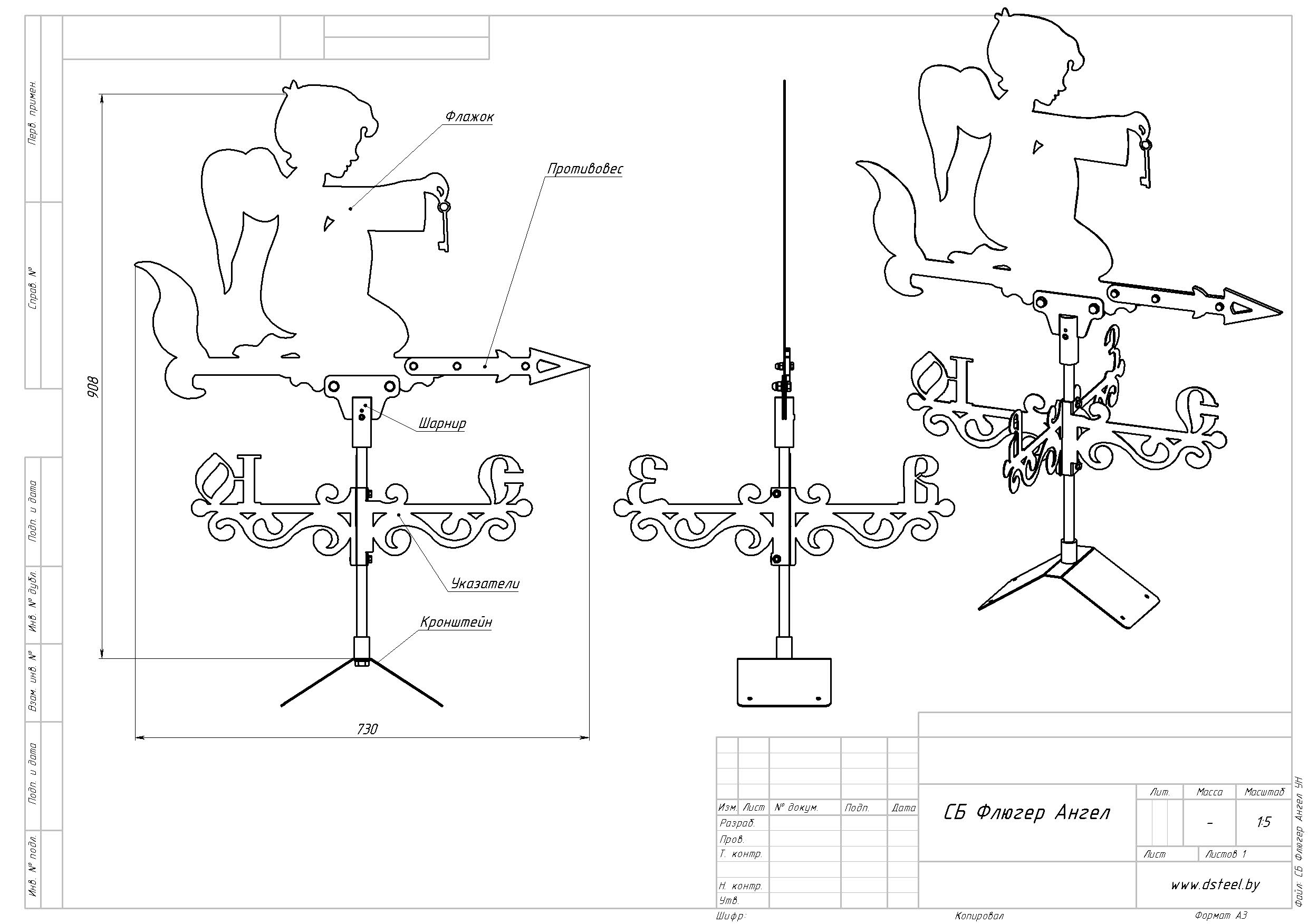 Мы вышлем Вам несколько макетов из которых Вы сможете выбрать более подходящий вариант который Мы отправим в работу. Наш метод производства гарантирует что Вы получите именно то что заказывали, Флюгер "Ангел" будет иметь максимальную идентичность с макетом заказа, что является преимуществом сотрудничества с нами!